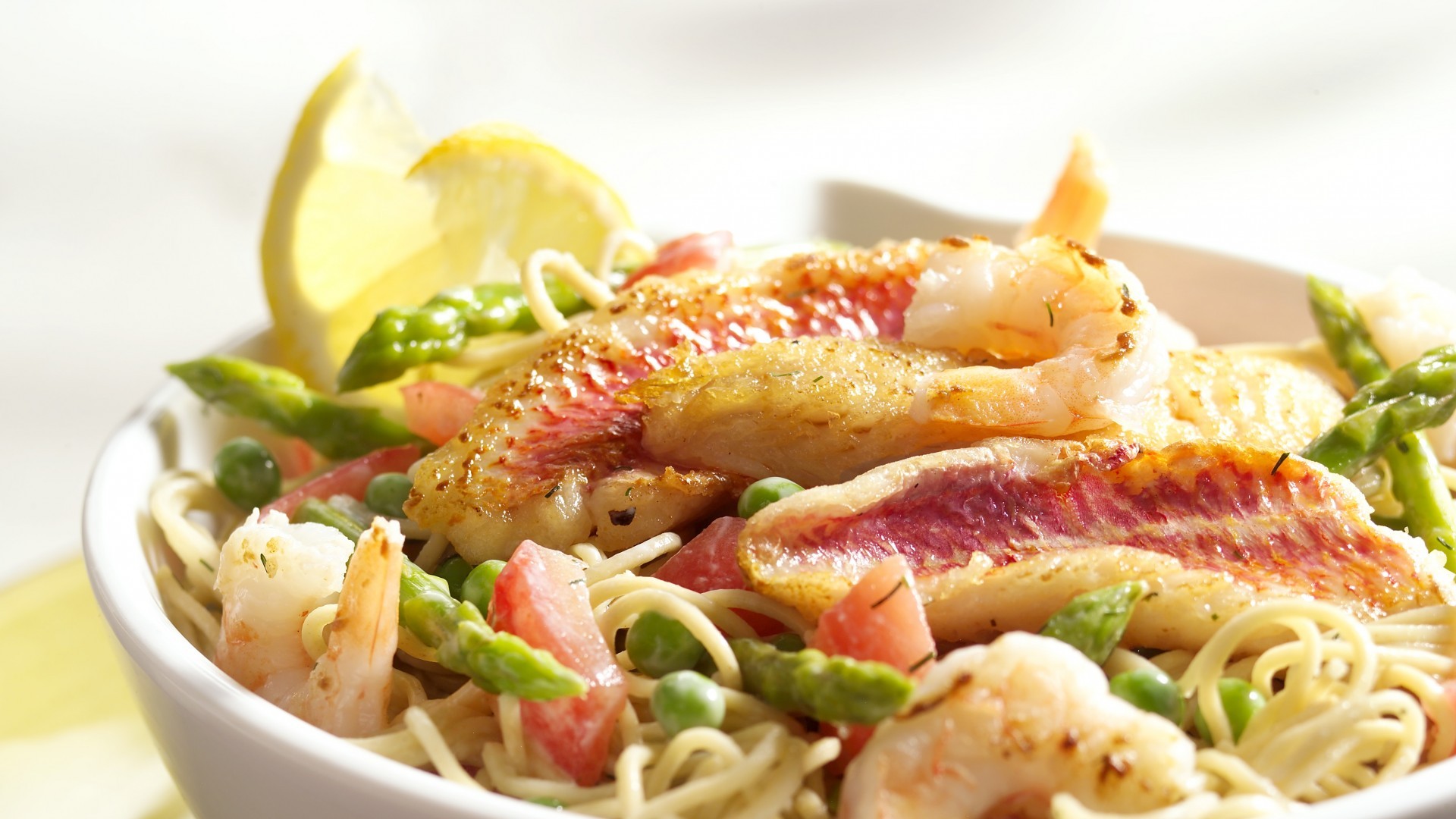 Paling, Schotse gerookte Zalm, Hollandse garnalen, brado, zalm-heilbotmedaillons, makreel, forel en krabvlokken.
